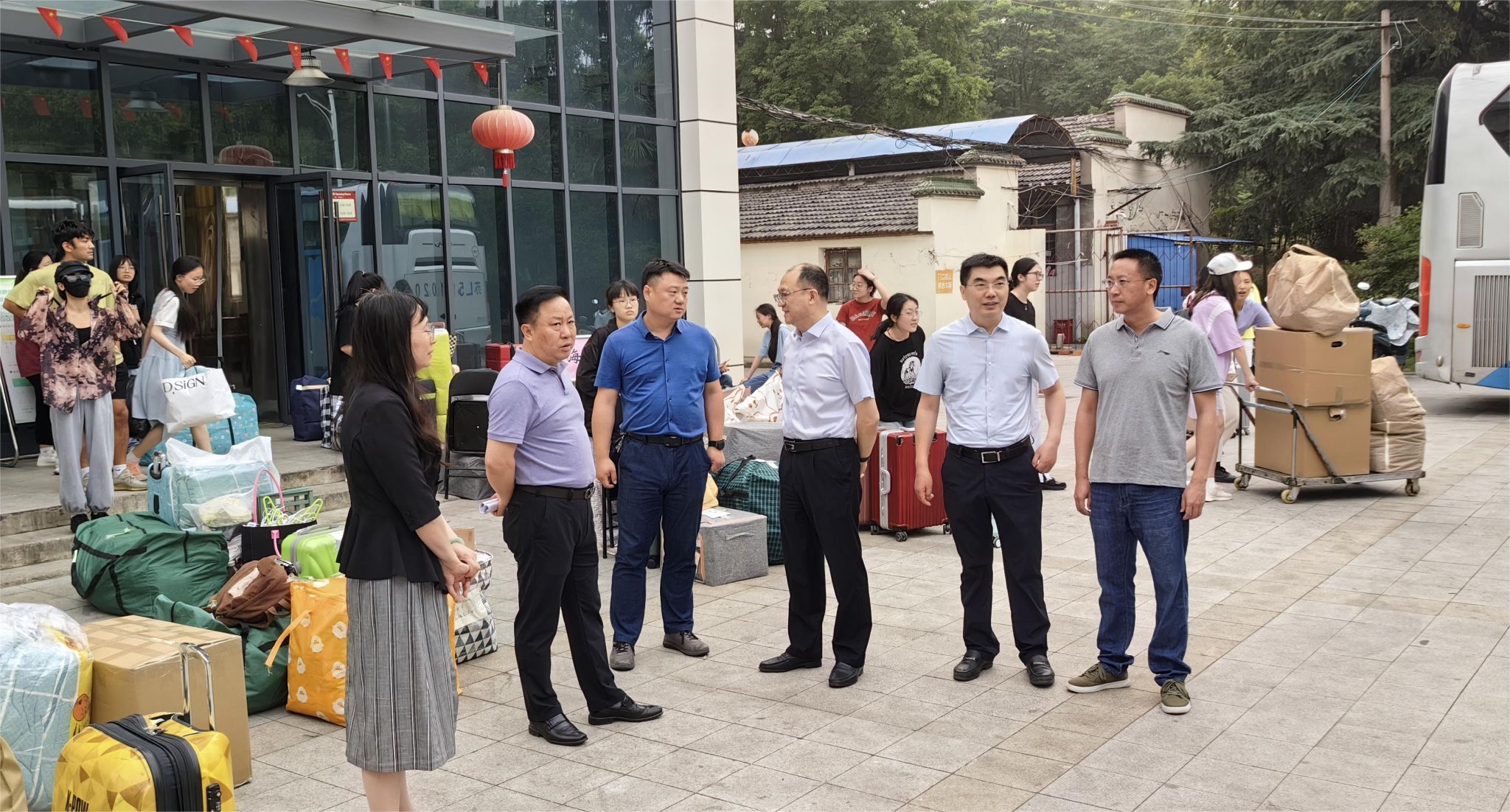 6月12日,永利澳门2019级临床医学专业、医学影像专业,2020级医学检验技术专业、护理专业以及永利澳门京江学院2020级护理专业、医学检验技术专业的1020名实习生,在永利澳门海外学院广场、二食堂南广场、四食堂和京江新校区等多个候车点集中,文明有序离校,奔赴江苏、浙江等地57家永利澳门临床教学基地,进行临床实习。校党委常委、副校长张济建、医学部常务副主任殷朝峰、学工处处长王海军、保卫处处长袁海宇、后勤管理处处长王善民、第一临床医学院党委常务副书记袁国跃等负责人亲临现场指挥并欢送学生赴点实习。