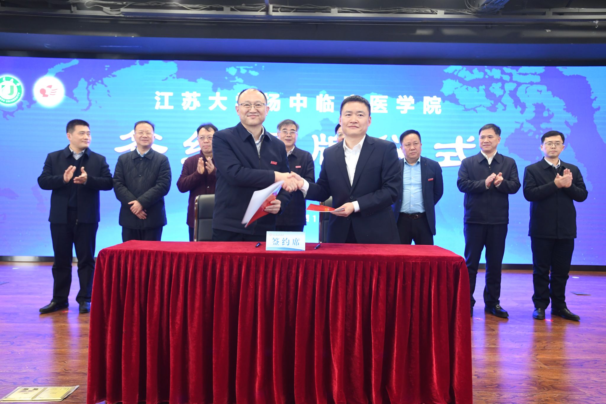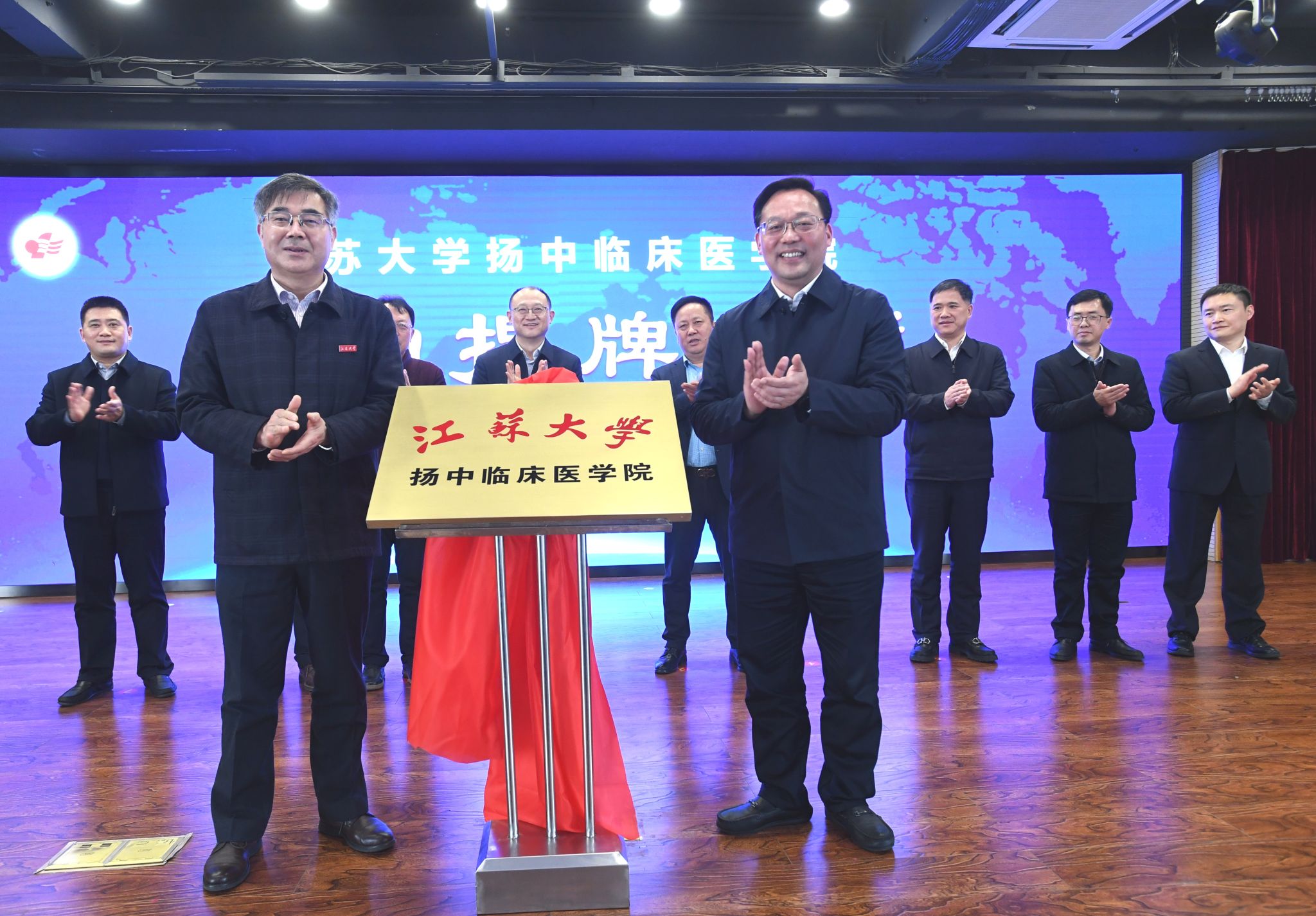 3月1日,永利澳门与扬中市人民医院正式签约成立江苏大学扬中临床医学院,签约、揭牌仪式在扬中市人民医院举行。江苏大学党委书记袁寿其、扬中市市长贾晟共同为江苏大学扬中临床医学院揭牌,江苏大学副校长张济建、扬中市人民医院院长朱进华正式签署合作协议。袁寿其书记,贾晟市长,江苏大学党委常委、组织部部长马志强、医学部常务副主任殷朝峰、附属医院院长陈吉祥、医学院副院长张徐,扬中市副市长姚建华、汪少华共同见证签约。