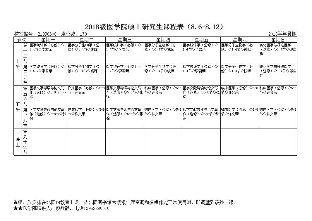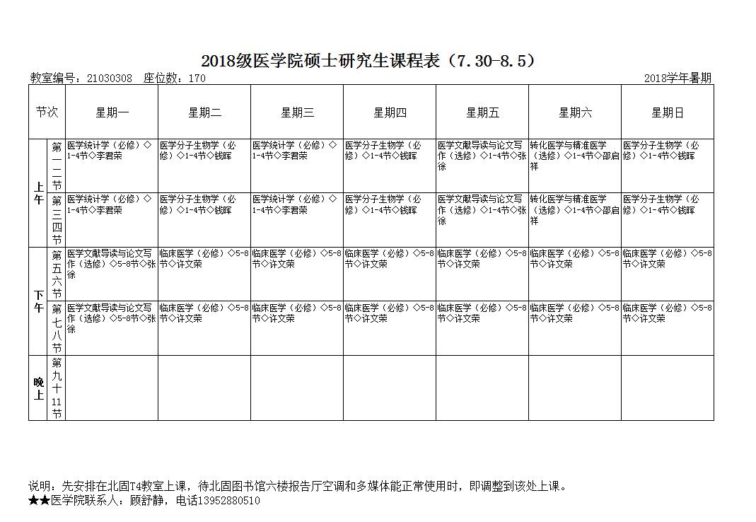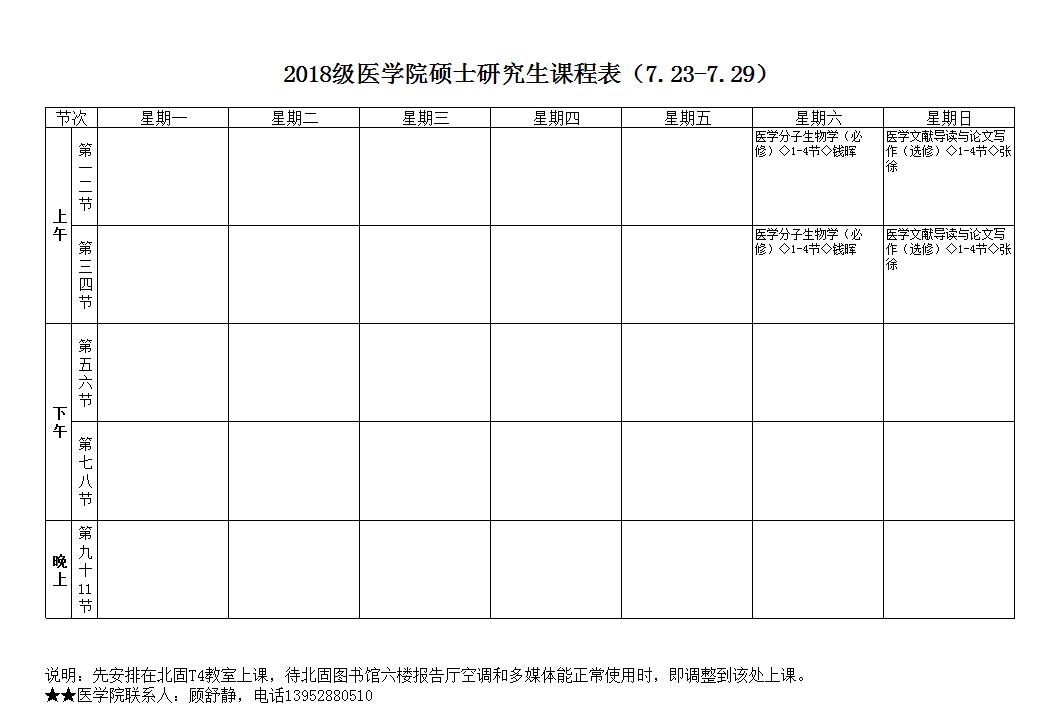 江苏大学2018级医学院硕士生2018年7月23日至9月2日课程表