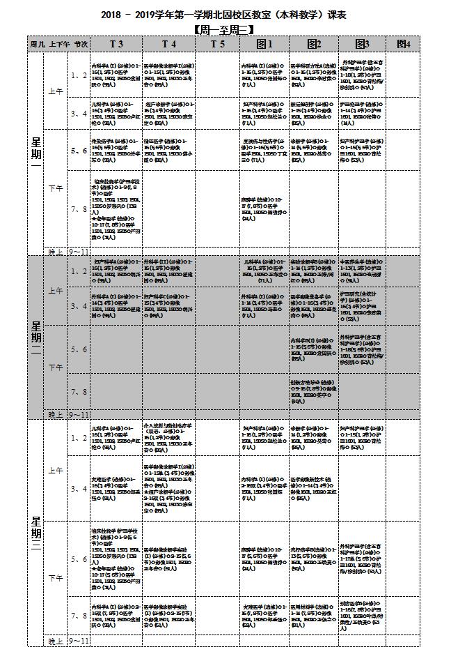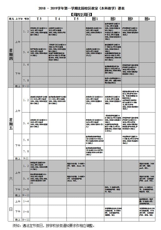 江苏大学北固校区2018 - 2019学年第一学期本科教学课表