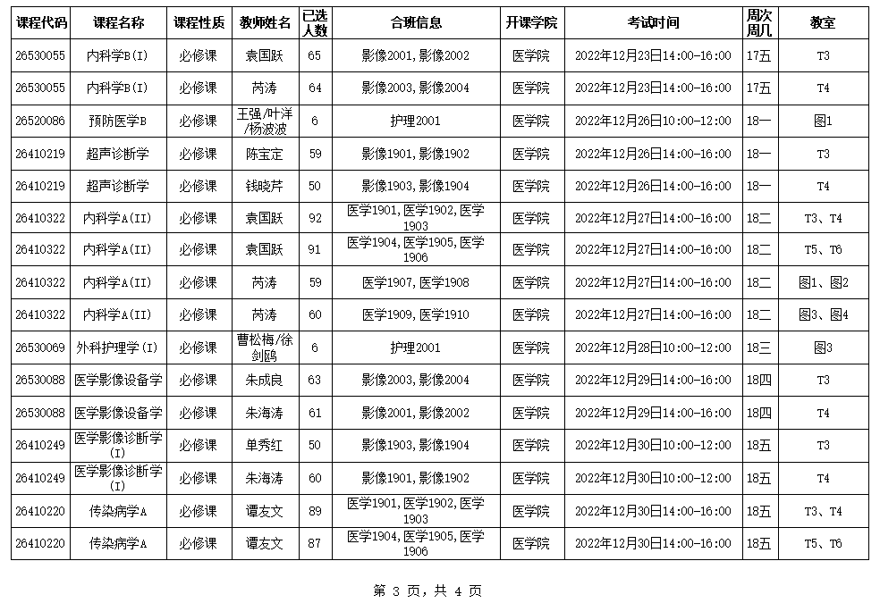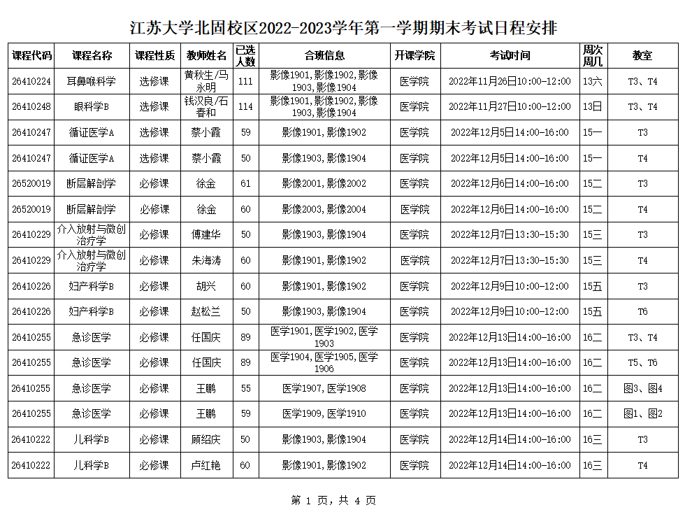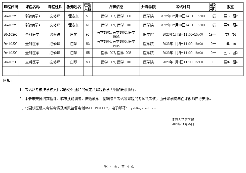 江苏大学北固校区2022-2023学年第一学期期末考试日程安排
