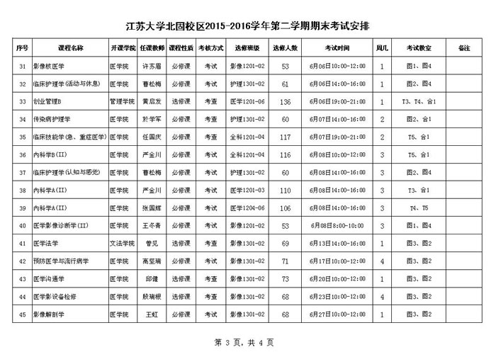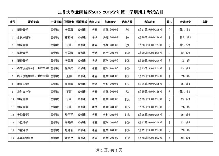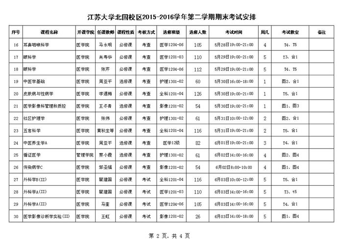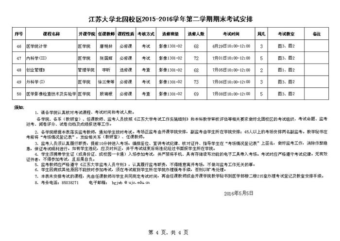 江苏大学北固校区2015-2016-2期末考试安排