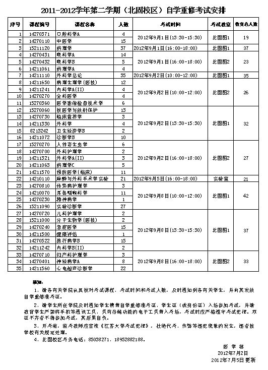 北固校区2011-2012学年第二学期自学重修考试安排表.xls