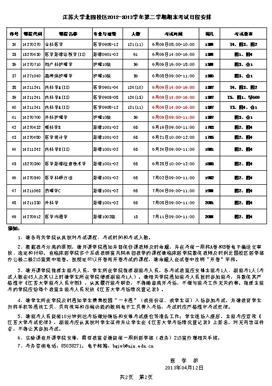 北固校区2012-2013学年第二学期期末考试日程安排
