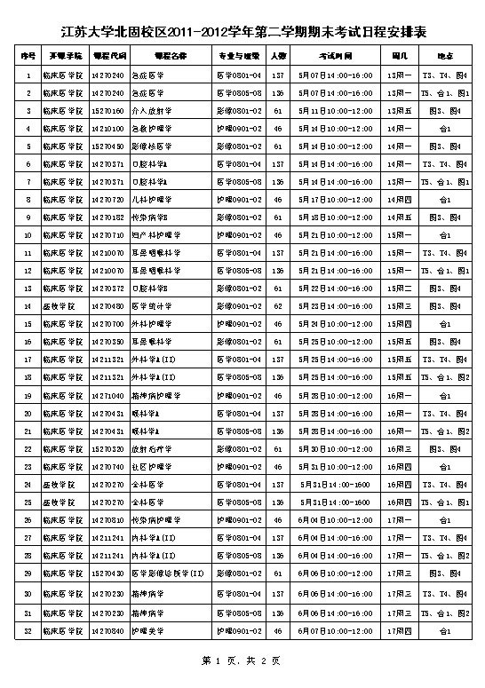 北固校区2011-2012-2期末考试安排表20120426.xls