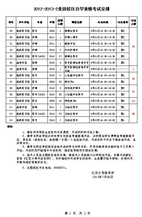 北固校区2012-12013-2自学重修考试安排