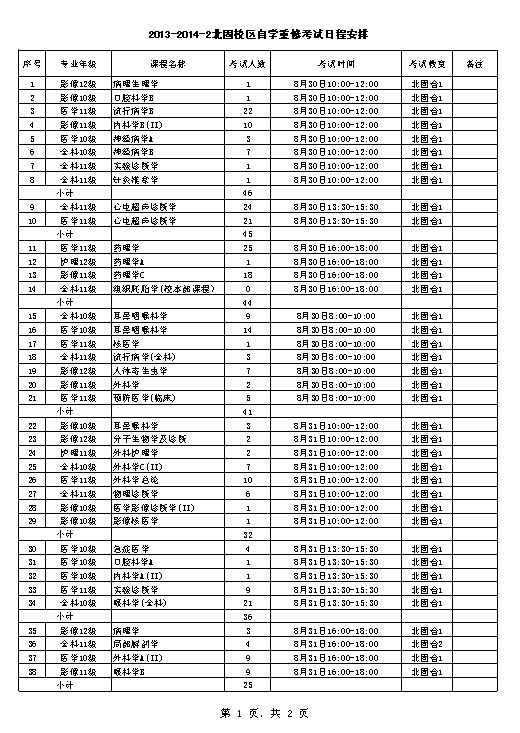 2013-2014-2北固校区自学重修考试安排