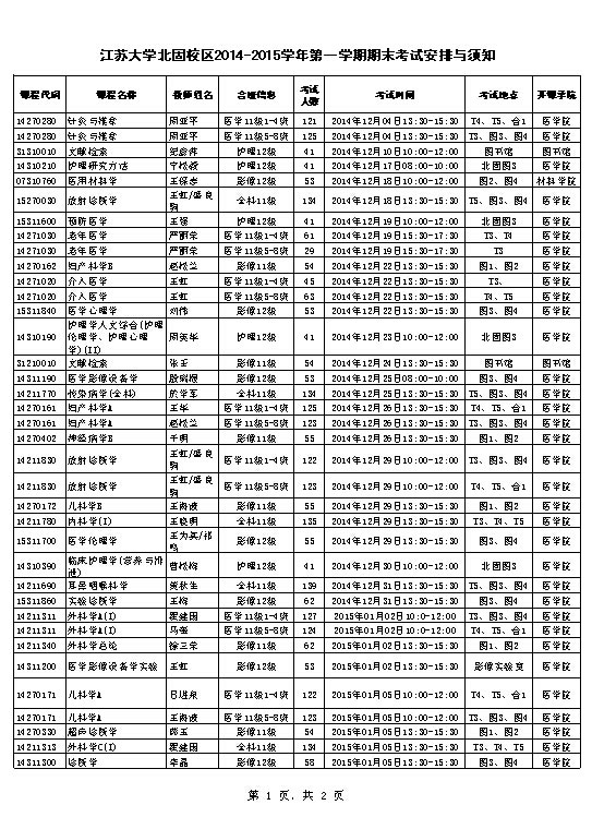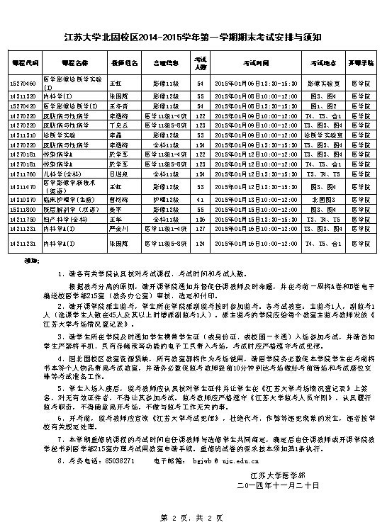 江苏大学北固校区2014-2015学年第一学期期末考试安排与须知