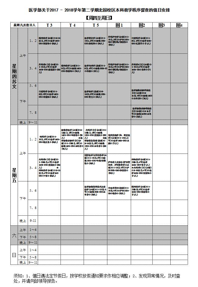 医学部关于2017-2018学年第二学期北固校区本科教学秩序督查的值日安排