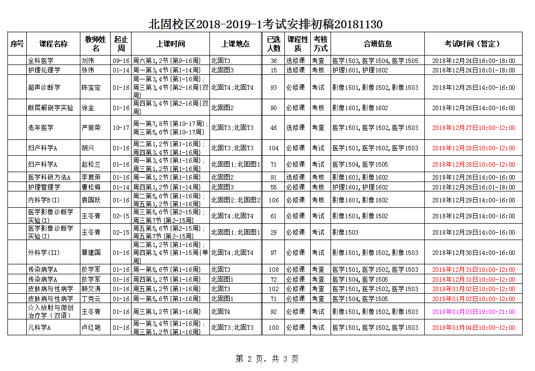 北固校区2018-2019-1考试安排第二稿20181130
