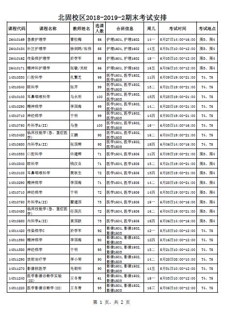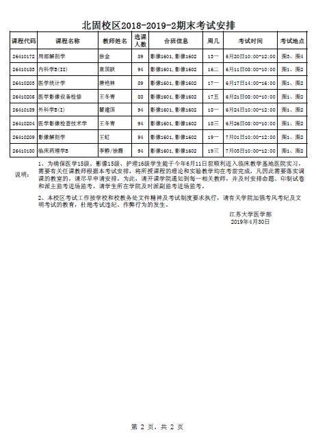 北固校区2018-2019-2期末考试安排