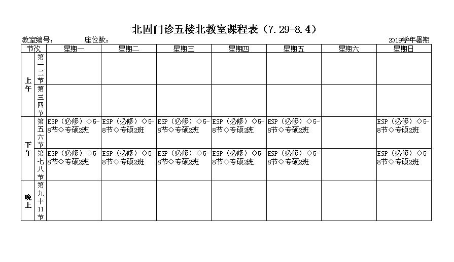 北固校区2019年级研究生暑期课表(门诊五楼北教室)